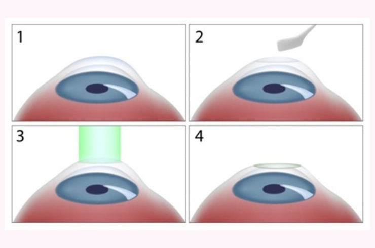 • After the epithelium is removed, the correction is performed by Excimer Laser Beam which reshapes the cornea. It is according to the refractive error of the patient.